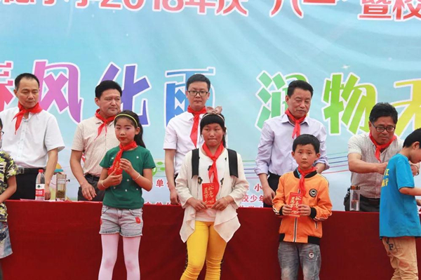 •        5月31日,榮事達“樂享凈水”健康助學團攜手春雨助學中心走進安徽廬江縣萬山鎮明德小學捐贈多臺凈水設備、愛心物資及貧困助學金,為孩子們送去“六一”特別禮物。