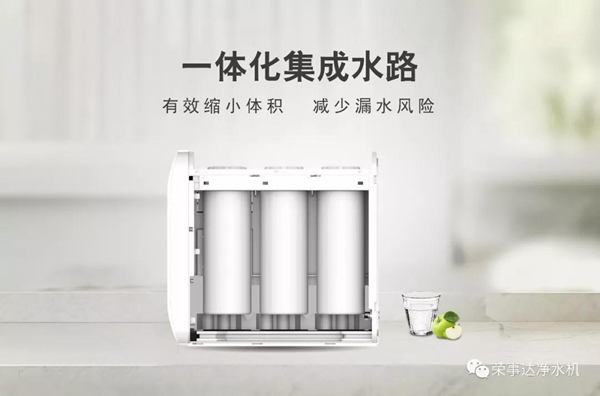 推陳出新的集成簡(jiǎn)約式機(jī)身,相較于傳統(tǒng)的壁掛箱體或櫥下柱型可以說(shuō)是一次完美的“瘦身”。385mm的迷你機(jī)身寬度要得益于內(nèi)部創(chuàng)新一體化集成水路設(shè)計(jì),一體注塑成型,接頭數(shù)由23減少到9,水路化繁為簡(jiǎn),不僅成為了一個(gè)“小可愛(ài)”,而且性能更加穩(wěn)定,再加上無(wú)罐設(shè)計(jì)的錦上添花,榮事達(dá)400G智能反滲透凈水機(jī)算是真正實(shí)現(xiàn)了“時(shí)尚至簡(jiǎn)”的視覺(jué)體驗(yàn)和“靈活隨心”的安置效果。