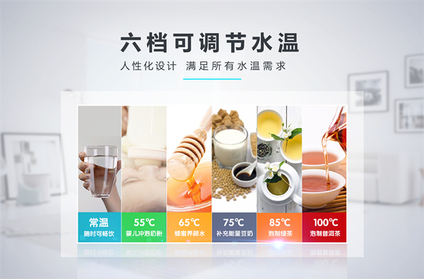 飲水機(jī)以加熱飲水為根本,不同的生活場(chǎng)景對(duì)于水溫的需求也各不相同。傳統(tǒng)飲水機(jī)多為常溫水和熱水雙重選擇,使用限制較大。為提升產(chǎn)品的人性化體驗(yàn),榮事達(dá)智能溫?zé)犸嬎畽C(jī)采用六檔可調(diào)節(jié)水溫設(shè)定,常溫、55℃、65℃、75℃、85℃、100℃,不同水溫可以充分滿足大眾直飲、沖奶、泡茶等各類(lèi)飲水使用需求,生活更為簡(jiǎn)便。