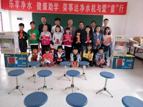 為了解決貧困地區(qū)孩子們的飲水安全問題,自2011年起,榮事達(dá)發(fā)起“樂享凈水·健康助學(xué)行動”,通過向貧困地區(qū)學(xué)校免費提供直飲水設(shè)備、援建校園直飲水工程、開展健康知識講座等志愿服務(wù),讓青少年兒童喝上健康衛(wèi)生的飲用水,同時樹立科學(xué)的飲水理念,幫助孩子茁壯成長。助學(xué)活動開展以來,榮事達(dá)志愿服務(wù)團(tuán)隊已遍及安徽、江蘇、陜西、江西、河南、河北等多個地區(qū),捐贈、安裝凈水設(shè)備數(shù)千套,受益師生群體龐大,社會反響空前。