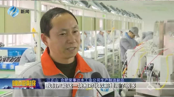 2月13日晚21時(shí)30分,合肥新聞?lì)l道《晚間播報(bào)》節(jié)目播出新聞《人勤春來早 新車間開啟新目標(biāo)》,榮事達(dá)水工業(yè)公司作為本土知名企業(yè),在新春伊始全面開啟生產(chǎn)模式,公司全新投入使用的全自動(dòng)智能化生產(chǎn)線、檢測(cè)線上已是一片忙碌景象。