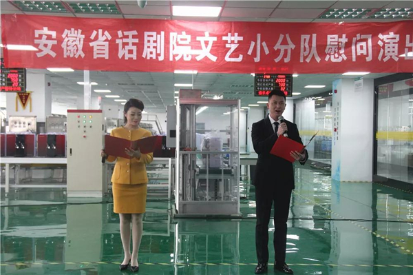安徽省話劇院成立于1953年,幾代話劇人秉承文藝為人民服務的宗旨,薪火相傳,不斷開拓文化藝術領域,為我省文化事業做出了突出貢獻,豐富著人民群眾的藝術生活。為更好地關心職工群眾生活、加強和創新地區企業文化發展、構建和諧勞動關系,安徽省話劇院開展“文藝輕騎兵全省巡演”活動,走進廣大基層企業。2月25日,由安徽省話劇院段曉波院長、黃磊院長帶領的巡演文藝小分隊走進榮事達水工業集團進行慰問表演,并帶來了多個精彩紛呈的藝術節目。
