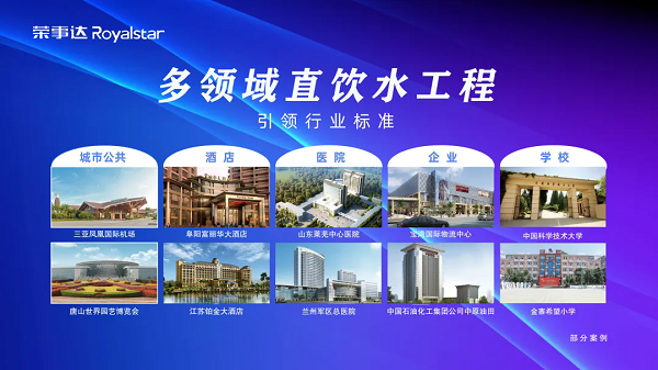 榮事達水工業深耕凈水20年,始終以其出色的工程技術和專業設備引領行業發展無論是企事業單位、酒店、醫院,還是商場、機場,都能見到榮事達水工業精心打造的直飲水設備。公司憑借3500+校園直飲水案例、2000+企事業單位案例以及獨立設計施工的唐山世界園藝博覽會、三亞鳳凰國際機場、合福高鐵沿途站點等大型直飲水工程,贏得了廣泛的贊譽和信賴。