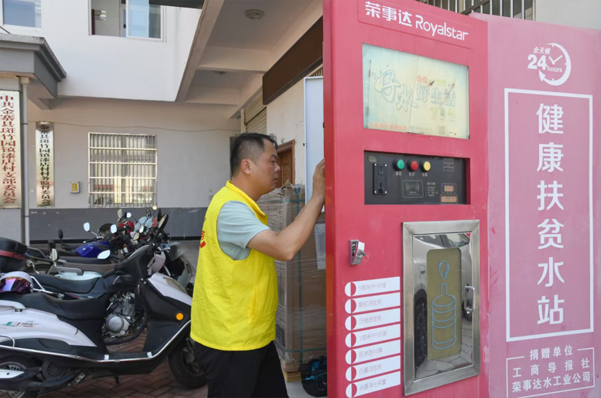 活動中,榮事達水工業黨支部發揮自身技術優勢,組織專業維修團隊對此前捐贈給該村的凈水設備進行了全面檢修保養,并免費更換了濾芯。這些凈水設備是榮事達水工業公司特別定制的產品,具備24小時自助供水功能,采用多級過濾凈化技術,能有效濾除水中的雜質、細菌、農藥、化肥及重金屬等有害物質,確保出水達到直飲標準。