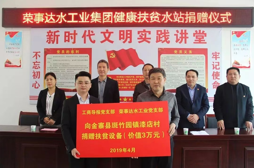 • 8月28日,榮事達水工業公司黨支部攜手工商導報社黨支部,再次走進金寨縣斑竹園鎮漆店村,開展“三送”(送宣傳、送技術、送健康飲水)服務活動,以實際行動踐行企業社會責任,助力鄉村振興。