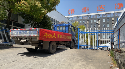 4月8日榮事達水工業集團工作人員以最快的速度進行物資的裝載,滿載著抗疫物資,發往37℃的愛活動統籌處。