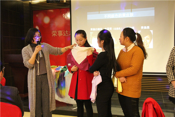 下午14時(shí),公司領(lǐng)導(dǎo)在古色古香、靈秀生動(dòng)的會(huì)場(chǎng)欣賞了美術(shù)館內(nèi)所珍藏的精美絕倫的油畫與雕塑作品;參加了由亞洲色彩形象中心認(rèn)證講師殷麗主講的顏值管理課程;與專業(yè)茶藝?yán)蠋熃涣髁似奋⑴莶璺椒āT陬佒抵v座環(huán)節(jié),通過(guò)講師精湛的理論講解、幽默的互動(dòng)交流、詳盡的案例分析,榮事達(dá)管理層成員對(duì)商務(wù)場(chǎng)合下儀容、禮儀、肢體語(yǔ)言的重要作用和實(shí)踐規(guī)范進(jìn)行了系統(tǒng)學(xué)習(xí)。