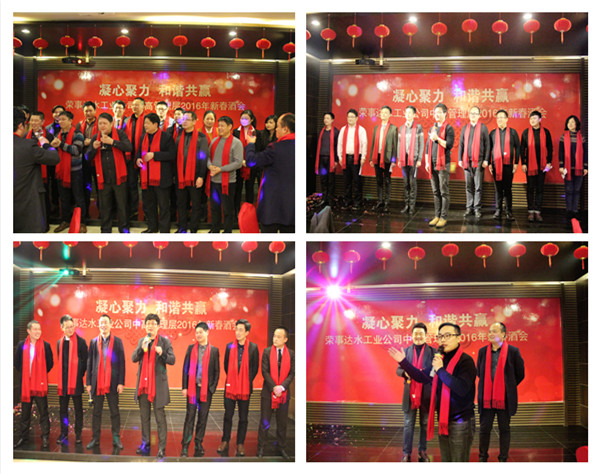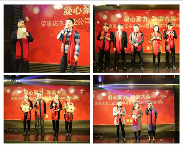 榮事達(dá)水工業(yè)公司中高管理層2016年新春酒會(huì)于1月27日在安徽省雕塑院1898文化會(huì)所隆重舉行,榮事達(dá)水工業(yè)公司董事長(zhǎng)雷鳴、總經(jīng)理支新郁及各分公司、事業(yè)部、部門領(lǐng)導(dǎo)共80余人出席。