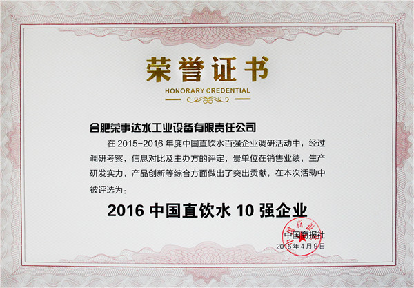 • 熱烈慶祝榮事達榮獲“中國直飲水10強企業”等多項大獎