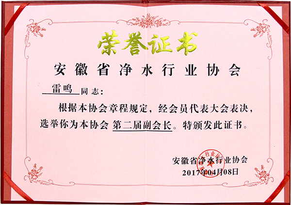 - 熱烈祝賀榮事達水工業(yè)公司董事長雷鳴連任安徽省凈水行業(yè)協(xié)會副會長