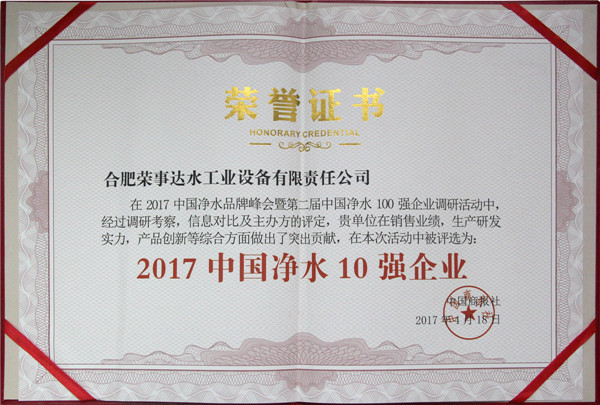 4月18日,2017中國凈水品牌峰會暨第二屆中國凈水100強企業(yè)頒獎盛典在北京維景國際大酒店盛大舉行。榮事達憑借強勁實力和消費者的信賴斬獲“2017中國凈水10強企業(yè)”、“2017中國商用凈水設備10強企業(yè)”、“消費者滿意品牌”多項大獎。