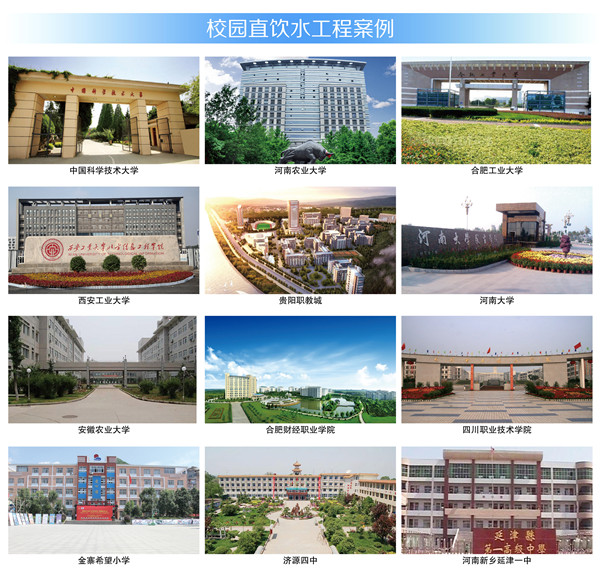 作為首批飲用水設備進校園推薦試點單位之一,榮事達多年專注于校園直飲水工程建設,在產品配置上,集中企業研發優勢不斷推出新品,充分滿足學校飲水量大、凈化效果好、安全性能高、使用成本低等多方面要求;在工程設計上,實行“專案定制”,根據校園飲水人數、飲水特征、水路布局等進行設計、施工,為學生量身打造安全飲水系統,成為數千所校園的放心選擇,呵護百萬師生。