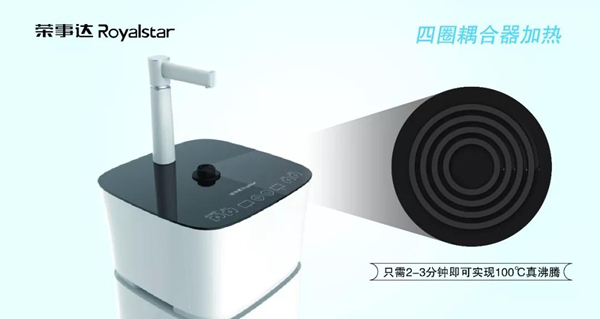 作為一款高品質家庭直飲機,榮事達智能凈飲一體機在加熱方面也可隨時滿足用戶的直飲需求。該產品配置最新四圈耦合器加熱系統,只需2-3分鐘即可達到100℃煮沸狀態,讓用戶享受便捷的飲水生活。
