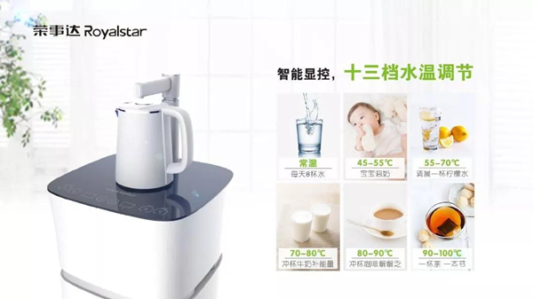 不同的生活場景對于水溫的需求也各不相同。傳統飲水機多為常溫水和熱水雙重選擇,使用限制較大。為提升產品的人性化體驗,榮事達智能凈飲一體機采用十三檔可調節水溫設定,每5℃一檔,充分滿足大眾直飲、沖奶、泡茶等各類飲水需求,飲水生活更為豐富。