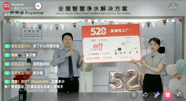 直播中,榮事達主播團隊向觀眾們分享了榮事達RO冷熱一體機以及全屋凈水系列產品,并對產品性能品質進行了深度講解。此次直播活動的重磅套餐——榮事達全屋智慧凈水系統(tǒng),基于個性化家庭定制場景,涵括了前置過濾器、中央軟水機、反滲透凈水機、速熱飲水機、凈飲一體機等系列產品,完美實現(xiàn)用戶家庭直飲、洗滌、洗浴、燒飯、洗菜、衛(wèi)生等全屋凈水覆蓋,有效杜絕各類有害物質侵襲,全方位呵護家庭飲用水健康。榮事達高品質、高顏值的明星產品一經推出,吸引了直播間觀眾紛紛留言詢價。直播間超低折扣、精品爆款限量秒殺、預訂讓利以及好禮免費送等福利更是讓參與活動的消費者熱情高漲,對榮事達的“良心讓價”好評如潮。