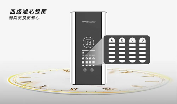 現代人越發追求極致簡約的生活方式。為使大眾凈水生活更加便捷省心,榮事達400G智能反滲透凈水機全面提升產品的智能化體驗,融入四級濾芯更換提醒功能,濾芯壽命到期閃爍燈即時提示,LED智能顯示面板運行狀態一目了然,讓用戶使用無后顧之憂,隨心所享,安心更省心。