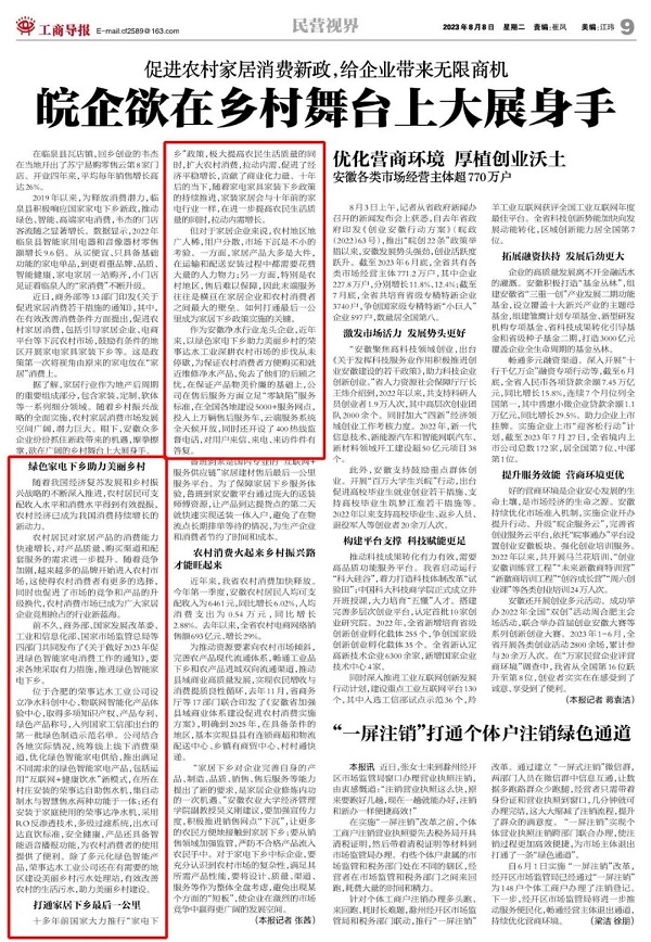 • 媒體聚焦|工商導報“皖企欲在鄉村舞臺上大展身手”