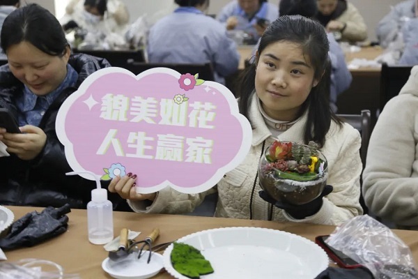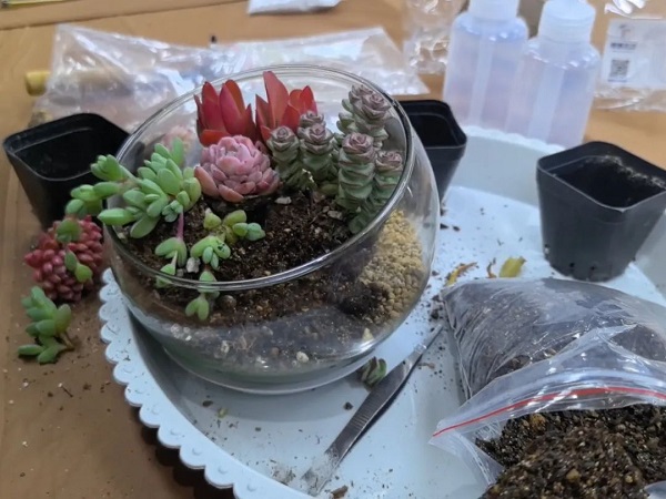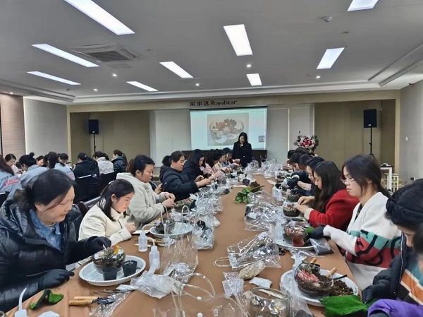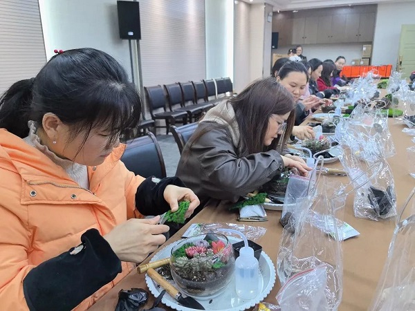 在DIY過程中,大家互相交流、分享心得,笑聲和談話聲此起彼伏。有的女神選擇了簡約風(fēng)格,將多肉植物種植在小巧精致的花盆里,展現(xiàn)出一種清新脫俗的美;有的則選擇了色彩豐富的搭配,將不同顏色的多肉組合在一起,創(chuàng)造出一幅幅生動(dòng)的畫面。