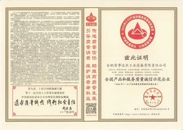 在由中國質量檢驗協會主辦的2024年“3·15”產品和服務質量誠信承諾的主題活動中,榮事達水工業公司憑借卓越的產品品質及良好的社會形象,獲得協會以及權威專家的一致認可,榮膺 “全國產品和服務質量誠信示范企業 ”“全國凈水行業質量領先企業”“全國凈水行業質量領先品牌”“全國產品和服務質量誠信品牌”“全國質量檢驗穩定合格產品”“全國質量檢驗信譽保障產品”“全國消費者質量信譽保障產品 ”多項榮譽。