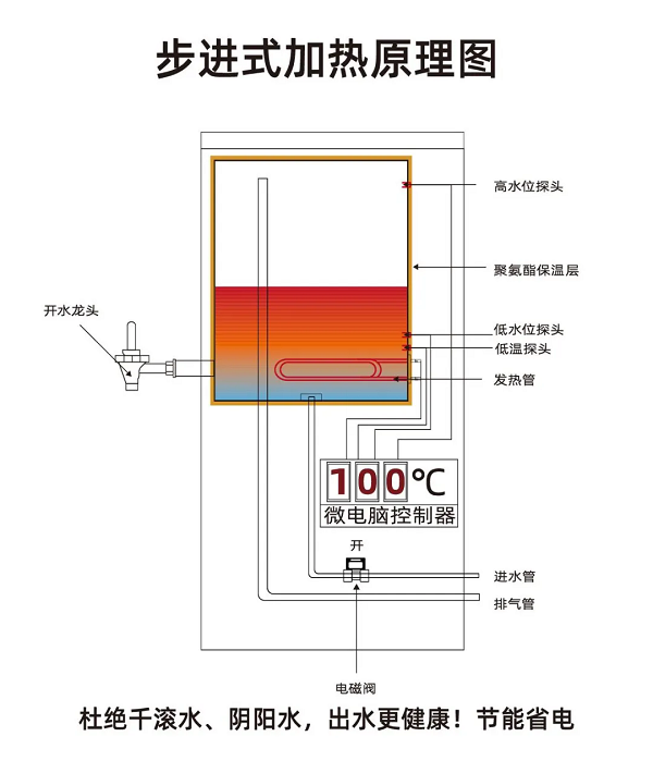 此次用于陜西省寶雞市鳳縣雙石鋪中學(xué)的RSD-60K步進(jìn)式開水器采用步進(jìn)式加熱技術(shù),多級(jí)過濾系統(tǒng)和七重保護(hù)功能等,杜絕千滾水、陰陽水,連續(xù)供應(yīng)開水,節(jié)能省電,出水更健康,使用安全放心。