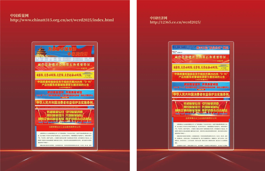 在由中國質量檢驗協會主辦的2025年“3.15”產品和服務質量誠信承諾的主題活動中,榮事達水工業公司憑借卓越的產品品質及良好的社會形象,獲得協會以及專家的一致認可,榮膺“全國行業質量領先品牌” “全國產品和服務質量誠信承諾企業” “全國消費者質量信譽保障產品” “全國質量檢驗穩定合格產品”多項榮譽,并在中國質量網、中國經濟網、中國產品質量信譽網等多家媒體上集中展示和公告。